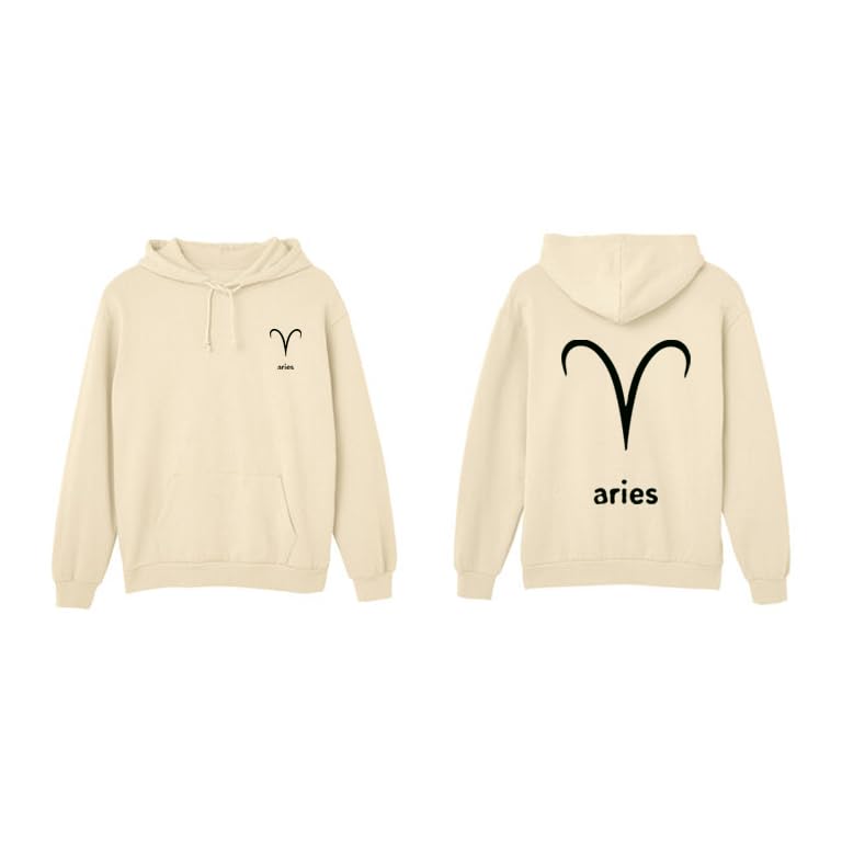 Generic - هودي قطن بيج مع شعار برج الحمل الاسود مقاس (S)