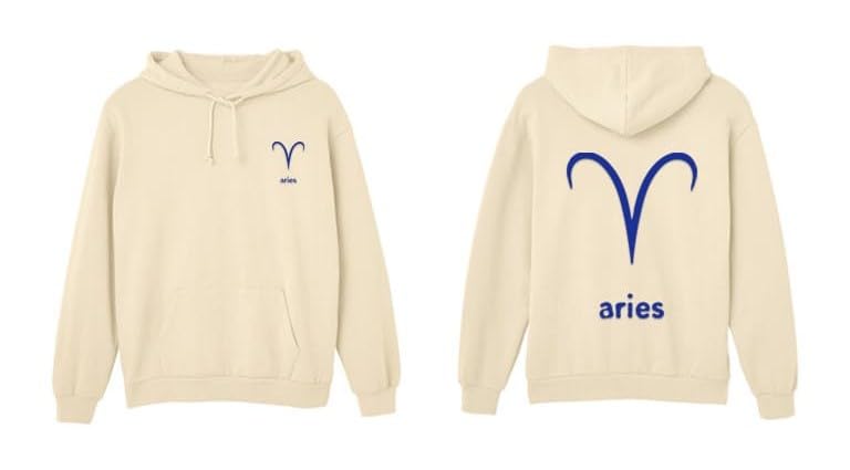 Generic - هودي قطن بيج مع شعار برج الحمل ازرق مقاس (S)