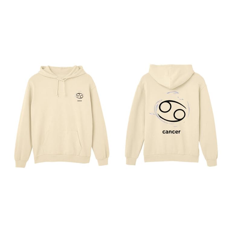 Generic - هودي قطن بيج مع شعار برج السرطان الاسود مقاس (XL)