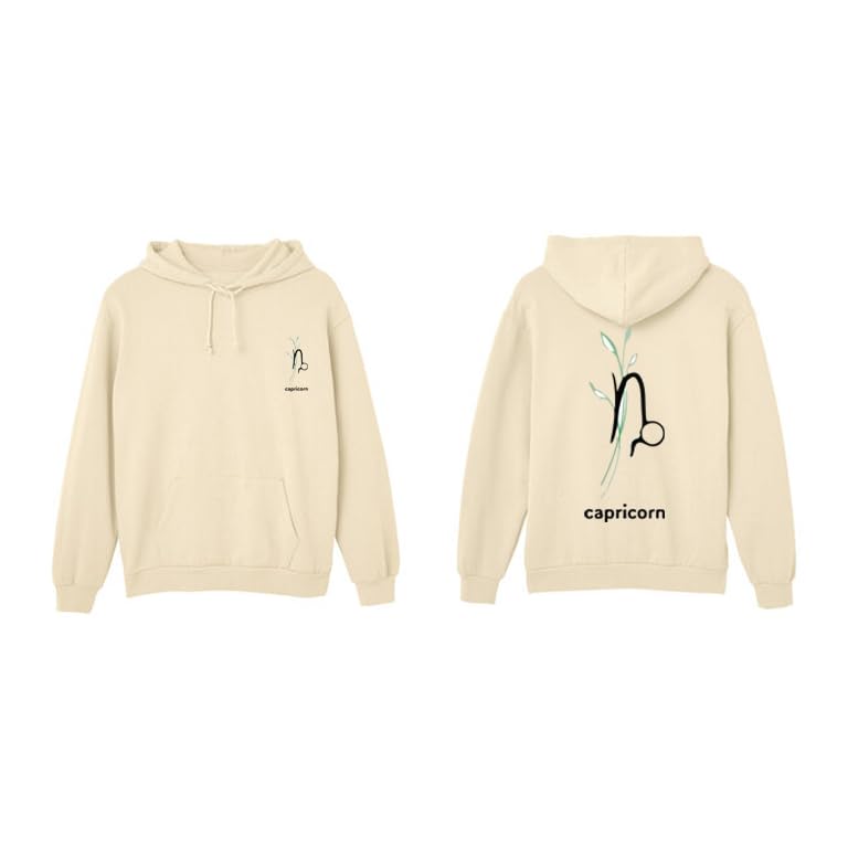 Generic - هودي قطن بيج مع شعار برج الجدي الاسود مقاس (S)