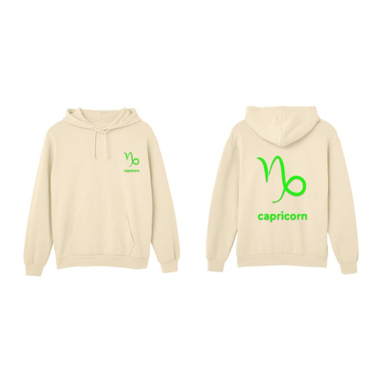 Generic - هودي قطن بيج مع شعار برج الجدي بلون اخضر ليموني مقاس (M)