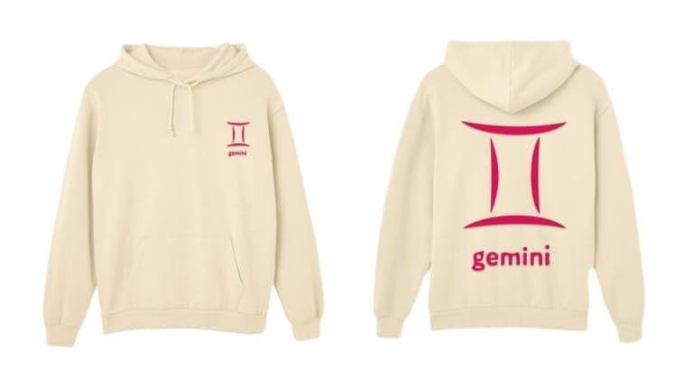 Generic - هودي قطن بيج مع شعار برج الجوزاء الاحمر مقاس (S)