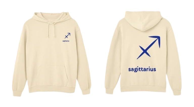 Generic - هودي قطن بيج مع شعار برج القوس الازرق مقاس (M)