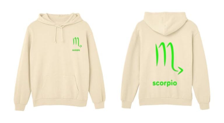 Generic - هودي قطن بيج مع شعار برج العقرب بلون اخضر ليموني مقاس (M)
