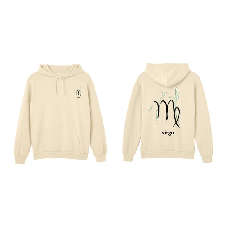 Generic - هودي قطن بيج مع شعار برج العذراء الاسود مقاس (S)