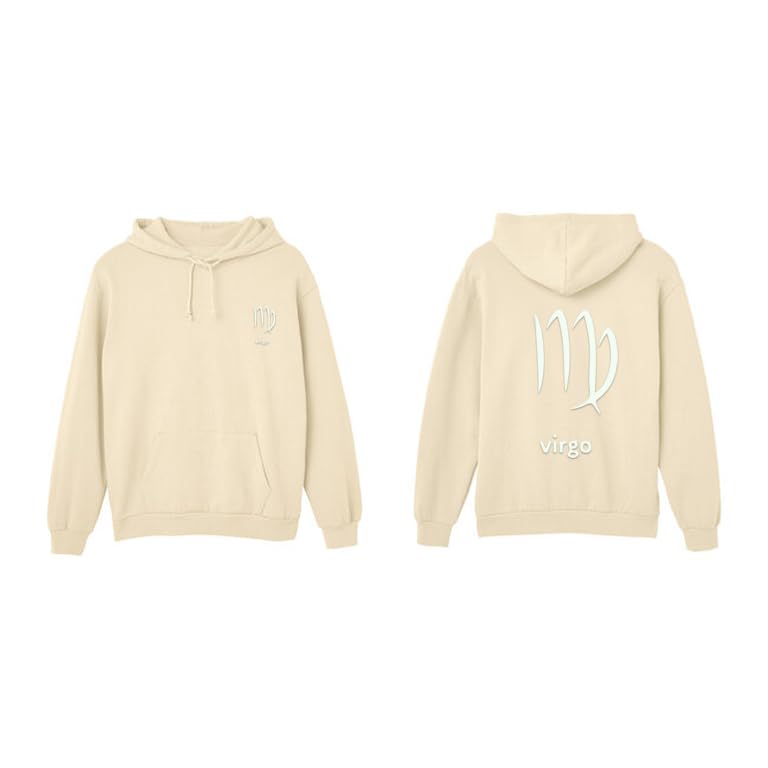 Generic - هودي قطن بيج مع شعار برج العذراء الابيض مقاس (S)