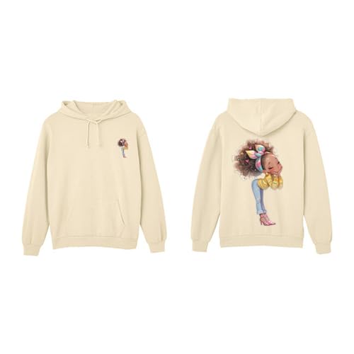 Generic - سويت شيرت بغطاء للرأس مطبوع عليه رسومات فنية وجيب امامي مقاس (M)