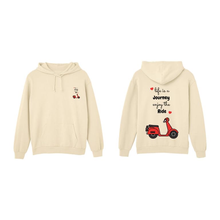 Generic - هودي بيج مع طباعة سكوتر ، Life is a Journey Enjoy the Ride Quote، جيب أمامي، رباط مقاس (M)