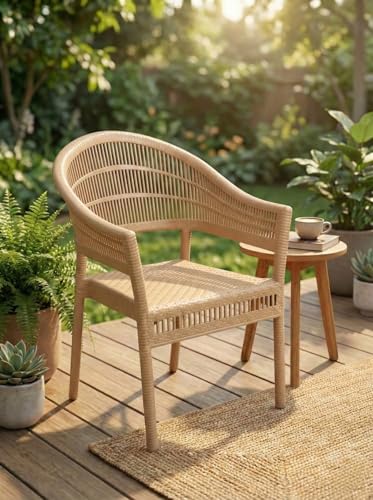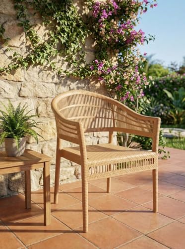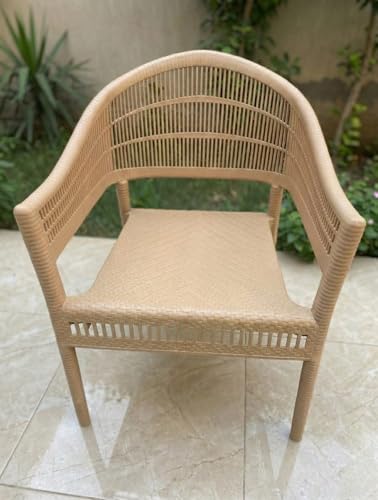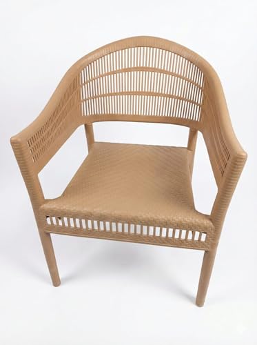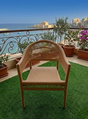 Generic - كرسي فوتيه راتان بيج - تصميم خوص مودرن للبلكونات والحدائق (Beige Rattan) - كرسي خارجي متين ومقاوم للشمس