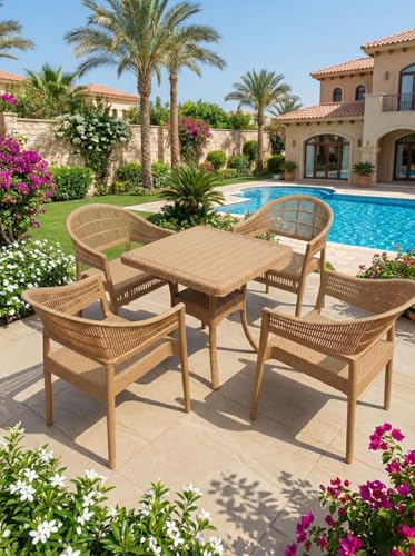 - ☀️ تكييف وتشميس ولا يهمك: سيبه في البلكونة أو الرووف طول السنة وأنت مطمن! خامة معالجة ضد الشمس (UV Resistant) عشان لونه "البيج" يفضل زاهي وما يقشرش، ومقاوم تماماً للمطر والرطوبة (مش بيصدي ولا بيسوس زي الخشب والمعدن).
