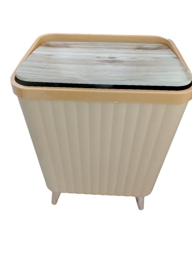 Generic - سلة تخزين مربعة بيج مع غطاء خشبي، حاوية تنظيم منزلي بتصميم مضلع