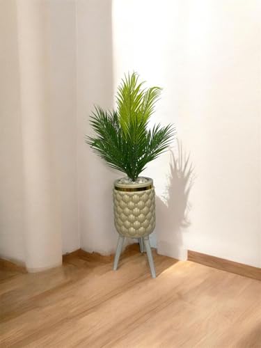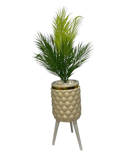 Generic - مزهرية بيج بتصميم محكم مع نبات صناعي أخضر، حامل ثلاثي القوائم، ديكور منزلي عصري