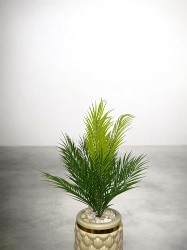 - نبات صناعي واقعي: تتميز بنبات أخضر صناعي بأوراق طويلة ورفيعة بتدرجات لونية طبيعية من الأخضر الداكن إلى الأخضر الفاتح لمظهر حيوي وجذاب