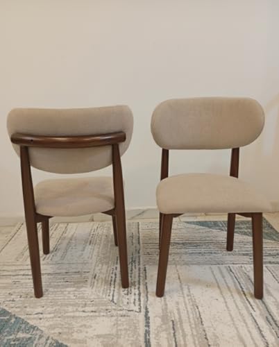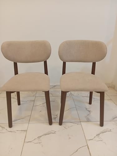 Generic - كراسي طعام بتنجيد بيج، إطار خشبي بني، تصميم عصري، طقم من قطعتين