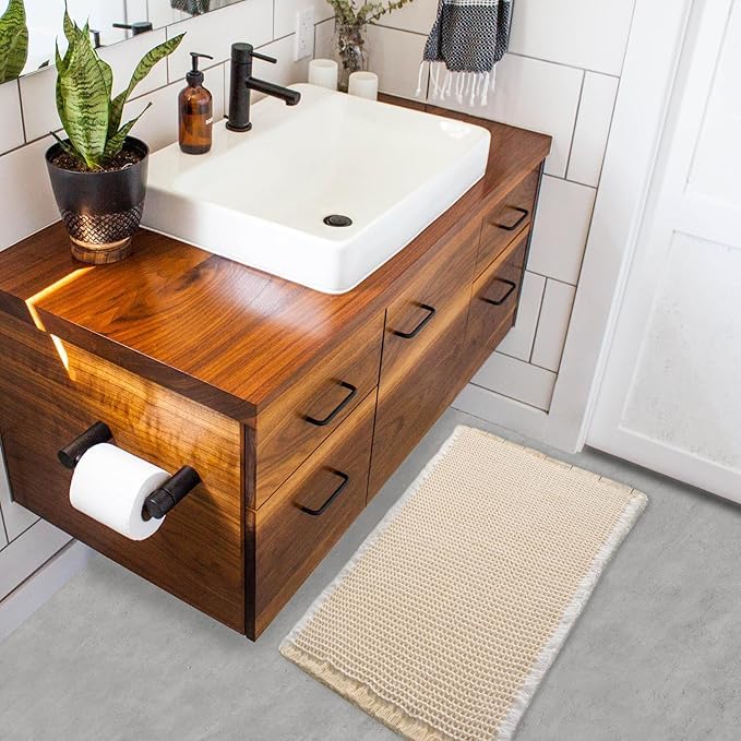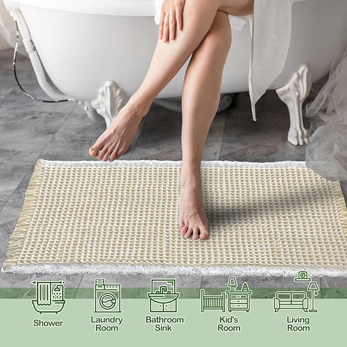 Generic - سجادة حمام بتصميم وافل، سجادة حمام فائقة الامتصاص ومضادة للانزلاق، قابلة للغسل في الغسالة، سجادة أرضية فائقة النعومة، لون كريمي مقاس 46×76 سم