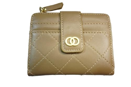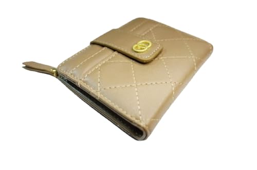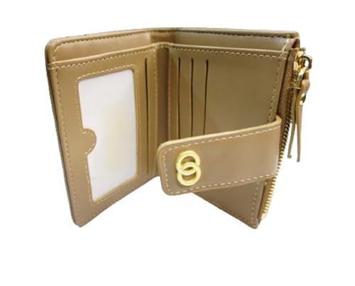 Generic - محفظة للنساء بمشبك وسحاب لون بيج، جلد صناعي