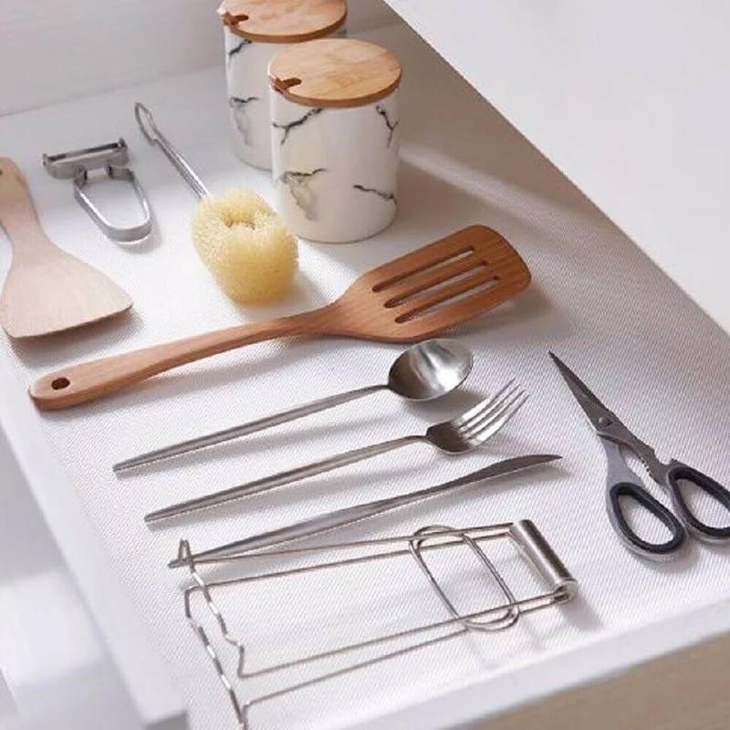 - [سهلة التنظيف والاستخدام ] بطانة الرف الخاصة بنا سهلة التركيب، حتى بالنسبة للأحجام والأشكال الفريدة. ببساطة قم بقص بطانة الدرج بمقص منزلي، ثم ضع ورق الرف في الدرج أو الخزانة. امسح الدرج أو الخزانة أولاً، وللتنظيف، استخدم الصابون وقطعة قماش مبللة أو إسفنجة.