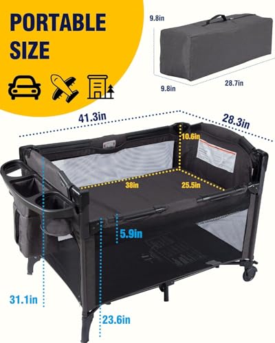 - 【تجميع آمن وقابل للحمل للنقل】لا حاجة إلى أدوات إضافية، فقط اسحب القضبان واضغط عليها واقفلها في الجزء السفلي من ساحة لعب الأطفال للتركيب أو التخزين. يتميز السرير الجانبي للسرير بأنه خفيف للغاية وصغير الحجم، ويشغل مساحة صغيرة جدًا، ويمكن تفكيكه ليناسب حقيبة السفر المرفقة مع جميع الملحقات. كما أن المقاس الداخلي 96.5 سم × 63.5 سم لسرير الطفل الجانبي متوافق مع مرتبة ووسادة بأحجام قياسية.