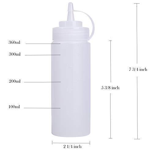 Bekith - مجموعة من 12 زجاجة بلاستيك بالضغط مع اغطية ملفوفة وقياسات محددة سعة اونصة بيكيث رش فارغة بفوهة واسعة للصلصة والكاتشب والشواء والصوص والطلاء وموزع زينة البان كيك