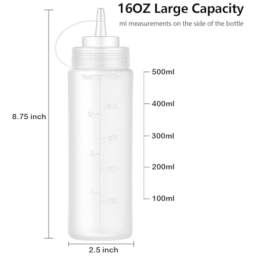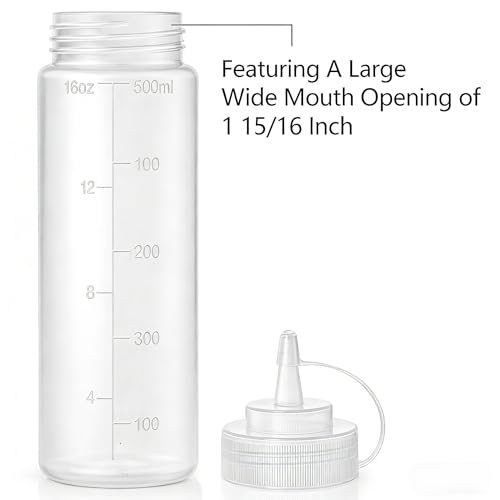 Bekith - زجاجات لتخزين التوابل من البلاستيك ذات فوهة عريضة سعة 16 اونصة مع اغطية ملفوفة وقياسات منفصلة زجاجة رش فارغة للصلصة والكاتشب والاضافات 12 قطعة بيكيث