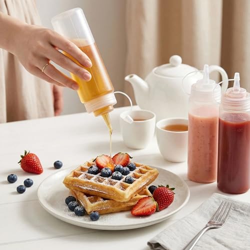 - زجاجات صلصة ذواقة مصنوعة من بلاستيك شفاف للغاية، مما يسمح لك بالتحقق من محتوياتها بسرعة. كما أنها تتميز بمقاسات كبيرة ومتنوعة حتى تتمكن من إضافة المكونات بدقة لجميع وصفاتك.