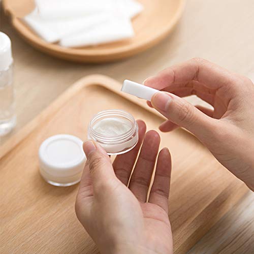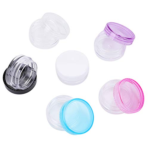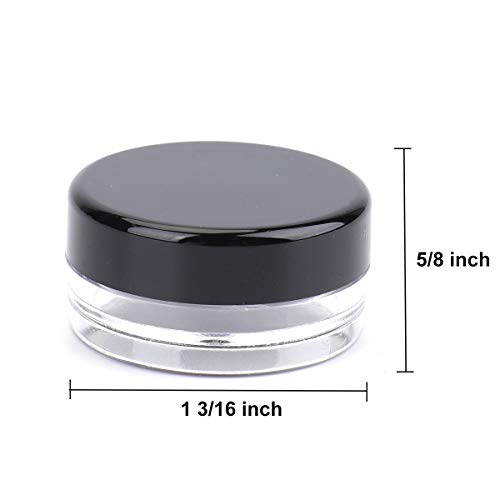 Bekith - بيكيث 120 قطعة من حاويات عينات فارغة 3 غرام / 3 مل مع اغطية، برطمانات بلاستيكية صغيرة شفافة لمستحضرات التجميل للكريمات وظلال العيون والبودرة مع 5 ملاعق صغيرة