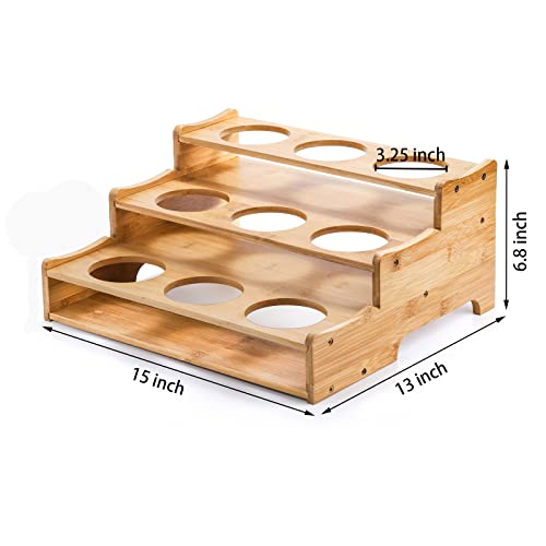 Bekith - بيكيث حامل زجاجات من الخيزران من 3 طبقات، حامل عرض النبيذ لسطح الطاولة 9 زجاجات، رف زجاجات يوضع على سطح الطاولة للمطبخ والمخزن والبار والقبو والخزانة، تخزين مثالي للنبيذ والصودا والبوب والعصائر