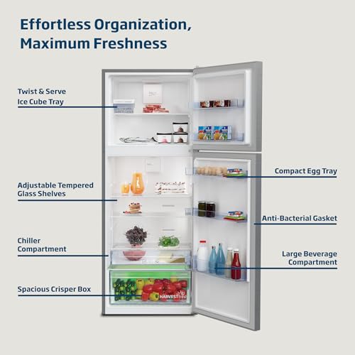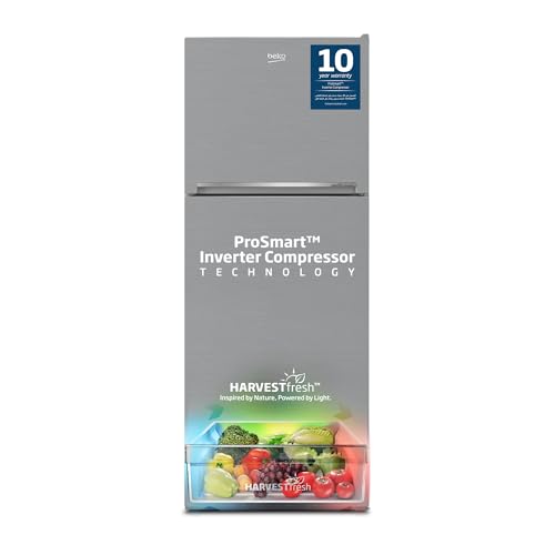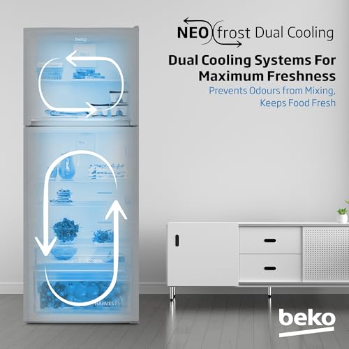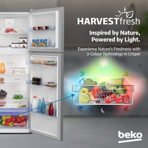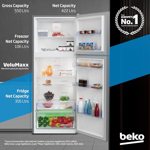 Beko - ثلاجة بفريزر علوي سعة 550 لتر بتصميم ضاغط عاكس ذكي احترافي وبنظام هارفست فريش ونظام تبريد مزدوج نيو فروست من بيكو، كول روم -RDNT550XS، (إصدار عالمي)، فضي