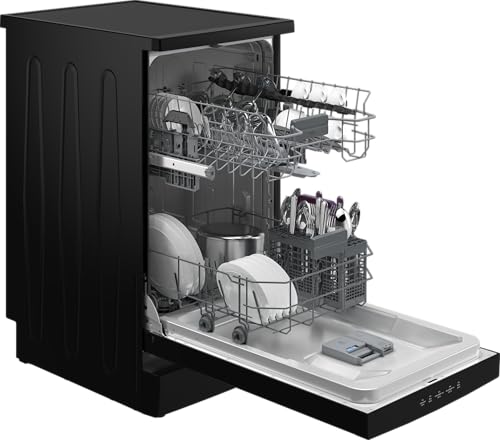 Beko - غسالة أطباق بيكو بعرض 45 سم بسعة 10 أطقم مع 5 برامج وتحميل جزئي، بخاصية البخار لتلميع الأطباق (SteamGloss)، تنظيف صحي مكثف وشاشة ليد مع تأخير في بدء التشغيل موديل BDFS15020B من بيكو، أسود