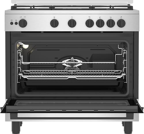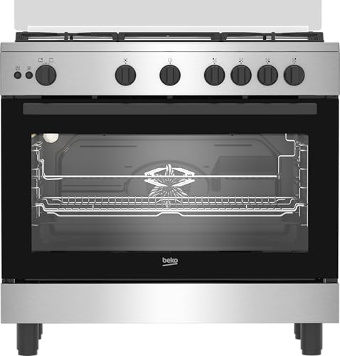 Beko - بيكو موقد فليم بلس - 5 شعلات - 90 سم - شواية غاز - مروحة طبخ - ستانلس ستيل - BGGR 12113 GXF