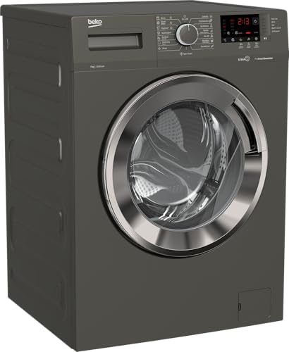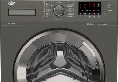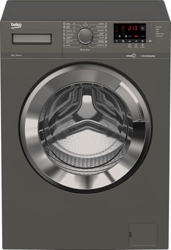 Beko - بيكو غسالة اوتوماتيك تحميل امامي - 7 كجم - محرك عاكس برو سمارت ضمان 10 سنوات - 1000 دورة في الدقيقة - معالجة بالبخار - شاشة LCD رقمية - 15 برنامج - تركي رمادي - باب كروم تعبئة أمامية