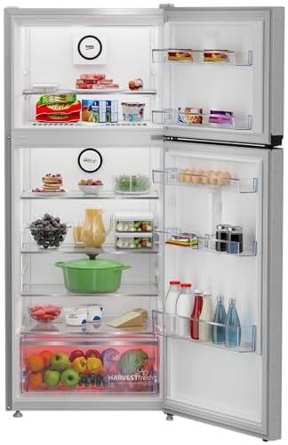 Beko - ثلاجة نيو فروست سعة 367 لترًا صافيًا بشاشة رقمية وتبريد مزدوج ومحرك برو سمارت انفرتر - هارفست فريش من بيكو - لون فضي مصقول - عرض 70 سم - RDNE420K02DXIDTEG