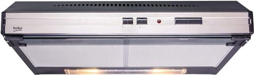 Beko - شفاط يثبت على الحائط مقاس 60 سم من بيكو، أقصى شفط للهواء 380 متر مكعب/ساعة وثلاثة مستويات سرعة وتصميم يوضع أسفل دولاب المطبخ وفلاتر كربون وشحم وتهوية داخلية وخارجية، موديل CFB 6433 XFE (محركين).