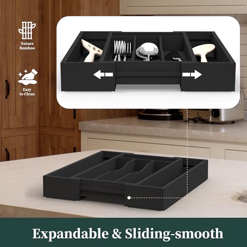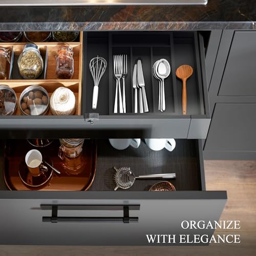 - خيزران طبيعي فاخر: منظمات أدوات المائدة الخاصة بنا مصنوعة من خيزران موسو عالي الجودة لتزويدك بحل منزلي أنيق وصديق للبيئة.