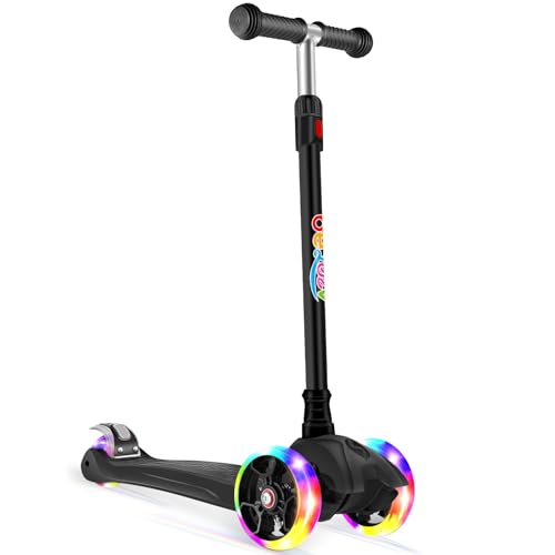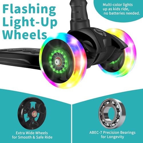 BELEEV - سكوتر ايه 5 بـ 3 عجلات للبنات والأولاد من بيليف، سكوتر للأطفال مع عجلات بإضاءة LED، مقود بارتفاع قابل للتعديل، آلية الاتكاء والتوجيه، لوح قدم غير قابل للانزلاق، سكوتر للأطفال 3-12