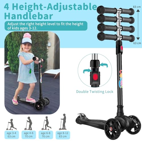 - مقود قابل للتعديل في 4 اتجاهات: تصميم سكوتر الأطفال الخاص بنا مع مقود قابل للتعديل يسمح للأطفال الذين يتراوح ارتفاعهم من 80 سم إلى 160 سم فقط بالعثور على وضع السكوتر المثالي للحصول على أقصى قدر من الراحة أثناء الركوب. مع السكوتر، تنمو اللعبة المفضلة الجديدة للأطفال من سن 3 إلى 12 سنة حتى وزن 60 كجم. سكوتر ثلاثي العجلات للبالغين مثالي للرحلات المدرسية ومغامرات عطلة نهاية الأسبوع.