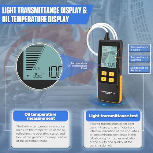 - بيلي جهاز اختبار زيت ناقل الحركة الرقمي للسيارات - جهاز اختبار زيت ناقل الحركة الأوتوماتيكي للسيارة مع شاشة 28 انش وخرطوم 800 ملم يختبر انتقال الضوء ودرجة حرارة سوائل النقل المختلفة