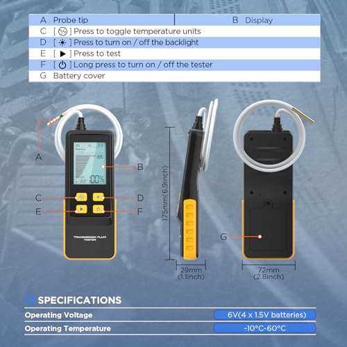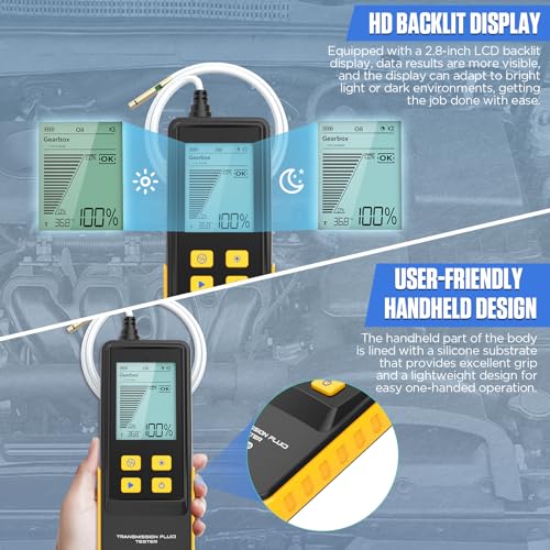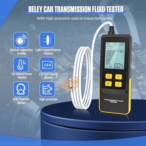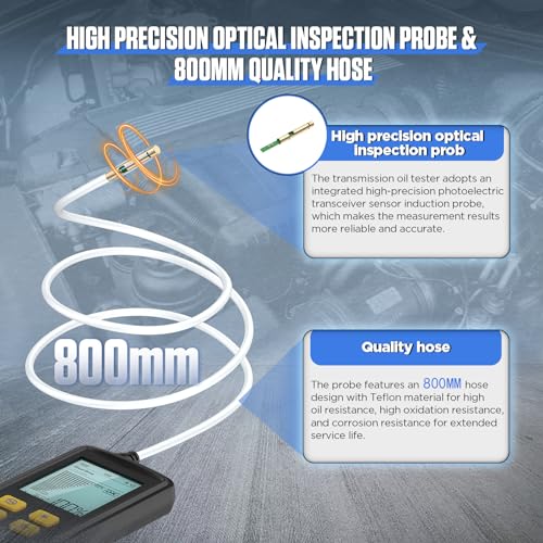BELEY - جهاز فحص زيت الفيتيس الأوتوماتيكي الرقمي للسيارات من بيلي - جهاز فحص زيت ناقل الحركة الأوتوماتيكي للسيارة بشاشة 2.8 بوصة وخرطوم 800 ملم يختبر نفاذية الضوء ودرجة حرارة سوائل ناقل الحركة المختلفة.