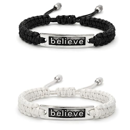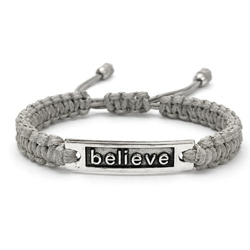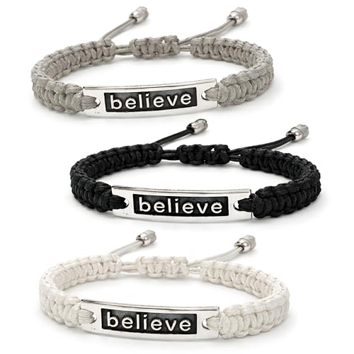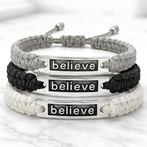 Generic - مجموعة اساور مضفرة ملهمة من بيليف، حبل مكرمية قابل للتعديل مع لوحة محفورة بلون فضي، اسود ورمادي وابيض، عبوة من 3 قطع