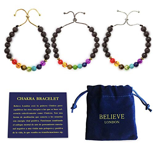 Believe London - سوار احجار كريمة لممارسة الشاكرا وعلاج القلق، كريستال واحجار طبيعية للرجال والنساء، موزع طاقة الريكي لليوجا وتقليل الاجهاد، احجار شبه كريمة من بيليف لندن®, حجر