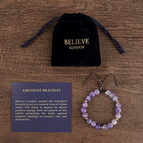 Believe London - سوار احجار كريمة لممارسة الشاكرا وعلاج القلق كريستال واحجار طبيعية للرجال والنساء موزع طاقة الريكي لليوجا وتقليل الاجهاد شبه من بيليف لندن® حجر اميثيست