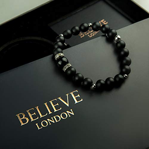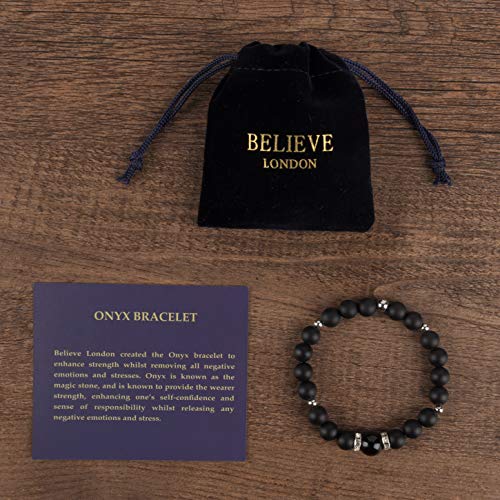Believe London - سوار احجار كريمة لممارسة الشاكرا وعلاج القلق كريستال واحجار طبيعية للرجال والنساء موزع طاقة الريكي لليوجا وتقليل الاجهاد شبه من بيليف لندن® حجر اونيكس