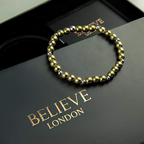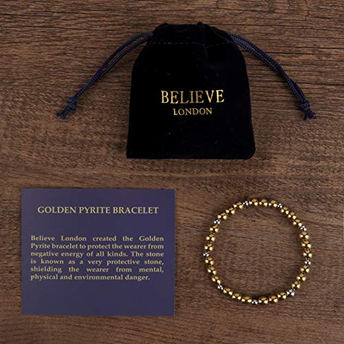 Believe London - سوار احجار كريمة لعلاج الشاكرا والقلق كريستال واحجار طبيعية للرجال والنساء موزع طاقة الريكي لليوجا وتقليل الاجهاد شبه من بيليف لندن حجر بيريت