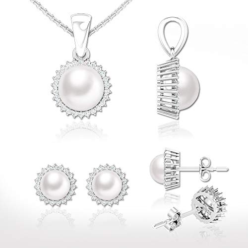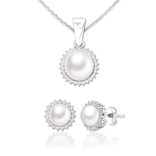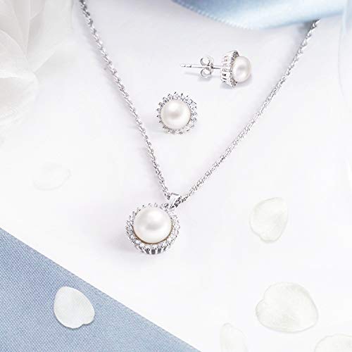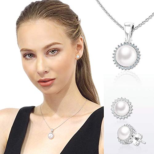 Belinda Jewelz - طقم حلق ودلاية من بليندا جيويلز من الفضة مع زركونيا مكعبة لامعة ولؤلؤ كلاسيكي
