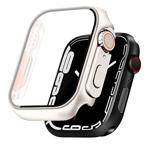BELIYO - جراب صلب من البولي كربونات بدرجة صلابة 9 لساعة آبل سلسلة 8 - 7 45 ملم بيليو شاشة حماية قابلة للتبديل إلى نوع الترا رفيعة للغاية ومقاومة للخدش توفر شاملة ستارلايت لساعات ذكية