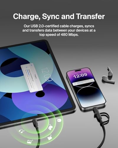 - نقل بيانات عالي السرعة + شهادة مزدوجة: استمتع بنقل البيانات بسرعة فائقة بسرعة 480 ميجابت في الثانية مع USB 2.0. بالإضافة إلى ذلك، يفي هذا الكابل بمعايير كل من شهادة USB-IF وشهادة "صنع لايفون".