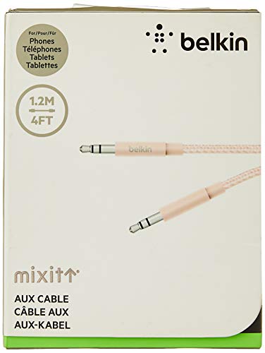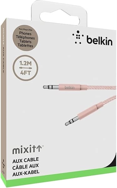 Belkin - كابل ميكست ميتاليك بمدخل Aux/مساعد 1.2 متر روز جولد AV10164BT04-C00 من بيلكن، حاسوب لوحي، مكبر صوت