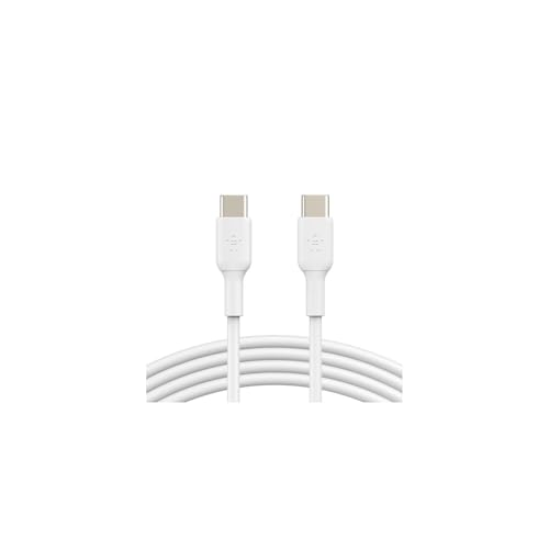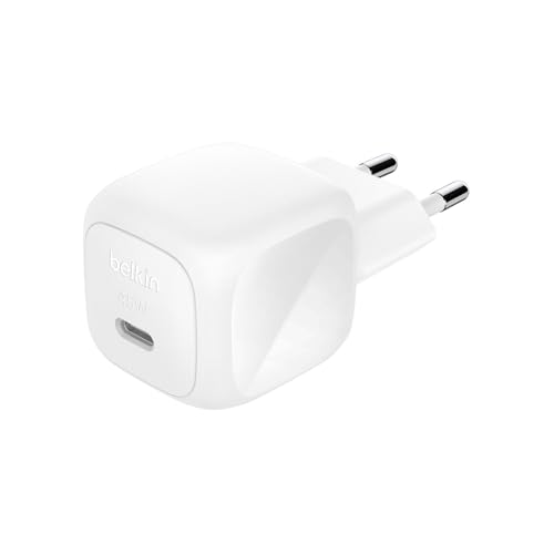 Belkin - شاحن حائط سريع صغير بقدرة 45 وات مع كابل USB نوع C إلى USB نوع C، متوافق مع موبايل آبل آيفون 16 و15 و14 وبلس وبرو وبرو ماكس وسلسلة سامسونج جالاكسي S25 وبيكسل 9 واي باد وايربودز من بلكين، لون أبيض
