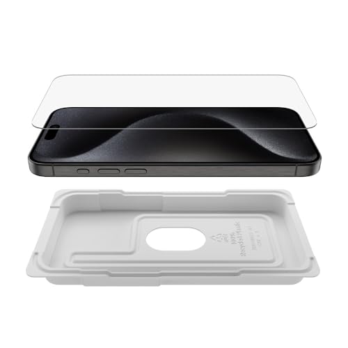 Belkin - شاشة حماية سكرين فورس من الزجاج المقوى لموبايل آيفون 16 برو ماكس، كريستال شفاف مقاوم للخدش، تغطية كاملة من الزجاج المقوى لموبايل آيفون 16 برو ماكس من بلكين