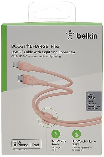 Belkin - كابل سيليكون من لايتينج الى نوع - سي بطول 1 متر بيلكن - بينك لمحول الشحن